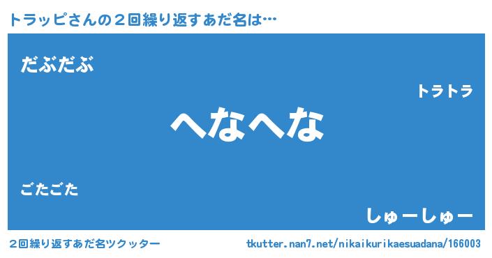| ヘコむあだ名 | 『トラもー』『トラッピ(小並感)』 |