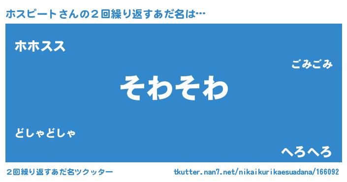 | 意味不明あだ名 | 『住所不定無職ホスピート(2歳)』 |
