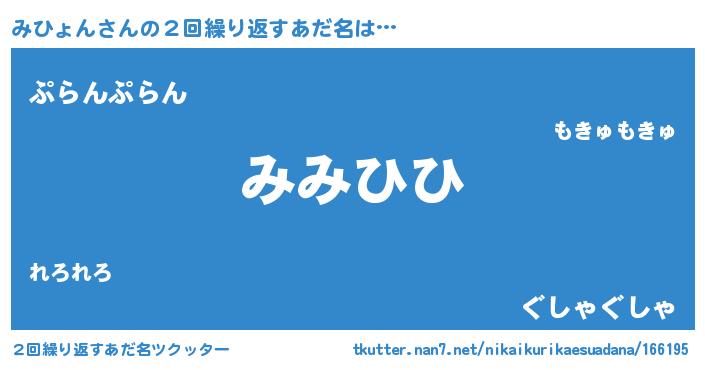 | 意味不明あだ名 | 『みひょんフォーエバー』『自称みひょん』 |