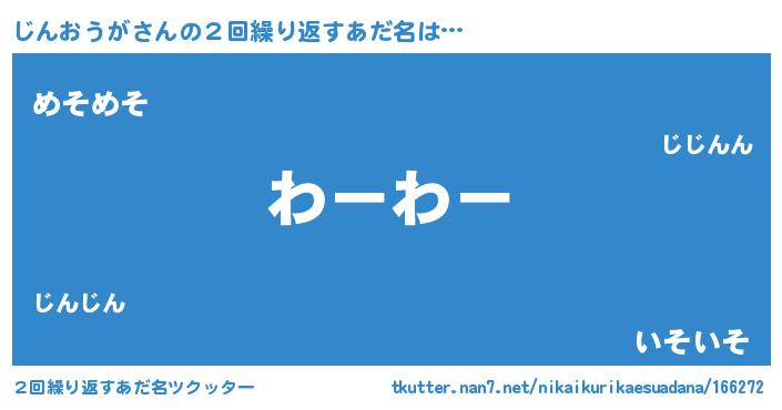 | 男性向けラノベタイトル風あだ名 | 『転生したらじんおうがだった件』 |