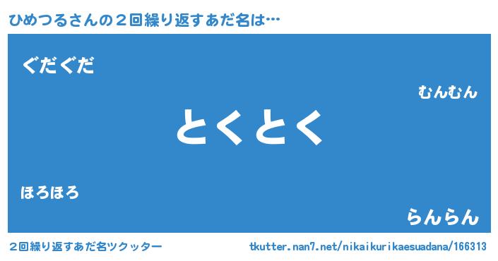 | ヘコむあだ名 | 『ひめつる(震え声)』『豆乳』 |