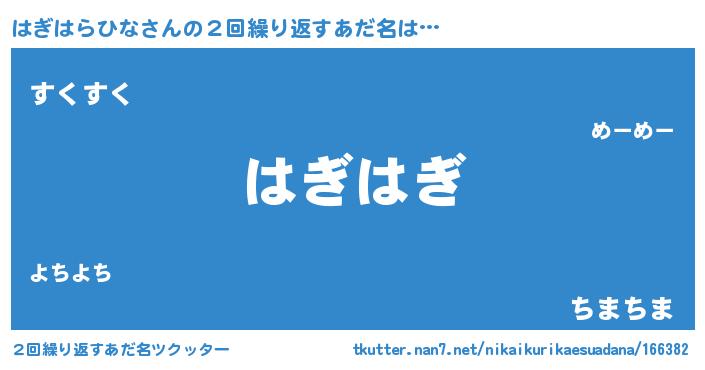 | ヒーロー風カッコイイあだ名 | 『スーパーハギハラヒナ』『仮面ハギダー』 |