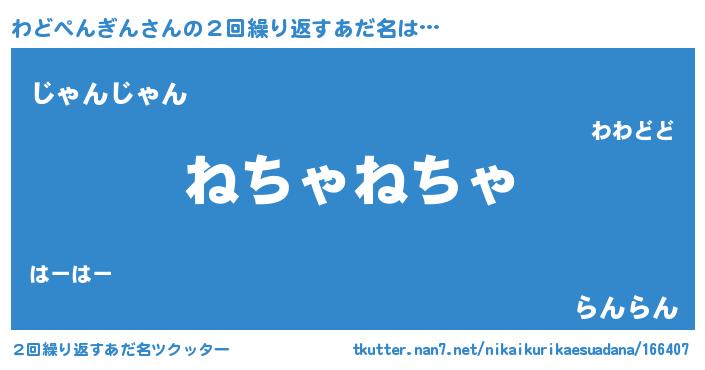 | 意味不明あだ名 | 『とにかく怪しいわどぺんぎん』 |