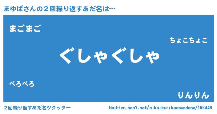 | 意味不明あだ名 | 『永久保存まゆば』『自称まゆば』 |