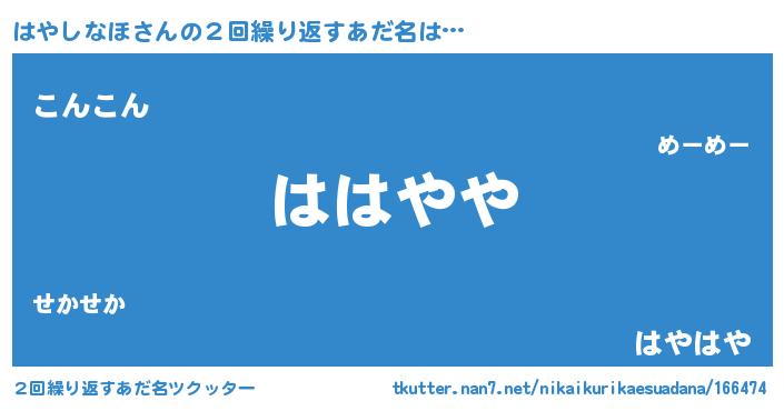 | 意味不明あだ名 | 『はやしなほフォーエバー』 |
