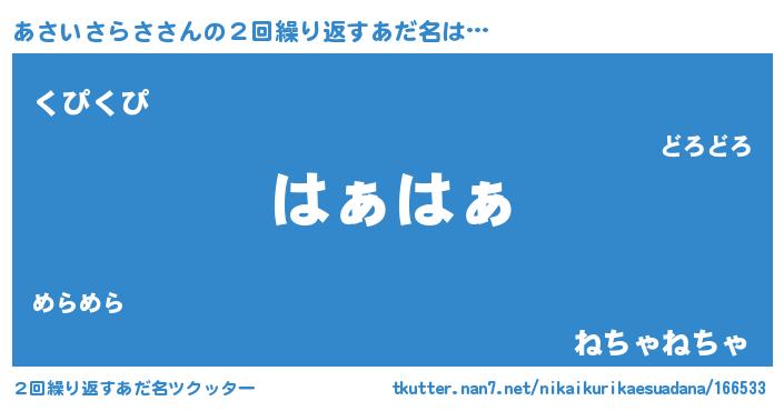 | ヘコむあだ名 | 『あさいさらさ(笑)』『あさお』 |