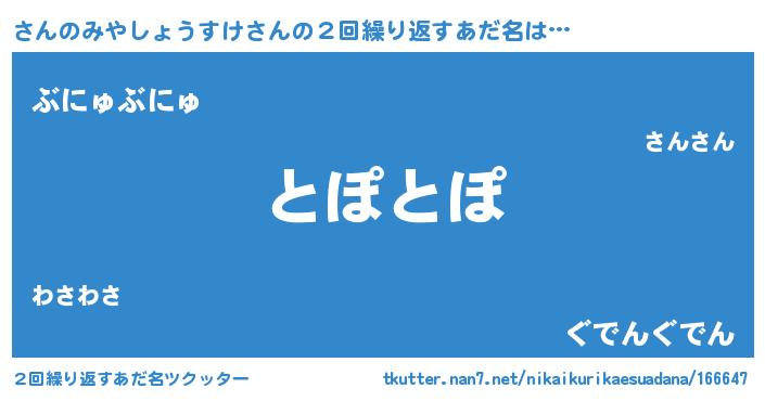 | ヘコむあだ名 | 『さんのみやしょうすけ(震え声)』 |
