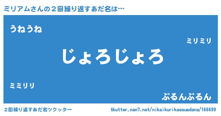 | 意味不明あだ名 | 『住所不定無職ミリアム(81歳)』 |