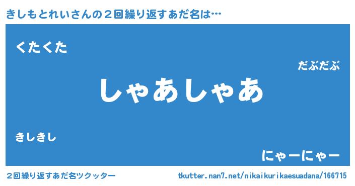 | ピコ太郎風あだ名 | 『ピコキ郎』『キシ六郎』『キコ三郎』 |