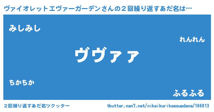 | 欧米人風あだ名 | 『ヴァイオレットエヴァーガーデンクリステル』 |