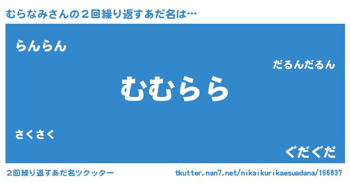 | 意味不明あだ名 | 『むらなみフォーエバー』 |