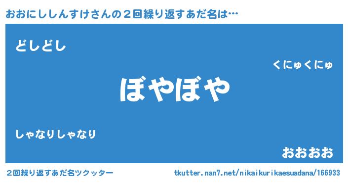 | 肩書あだ名 | 『おおにししんすけ助手』 |