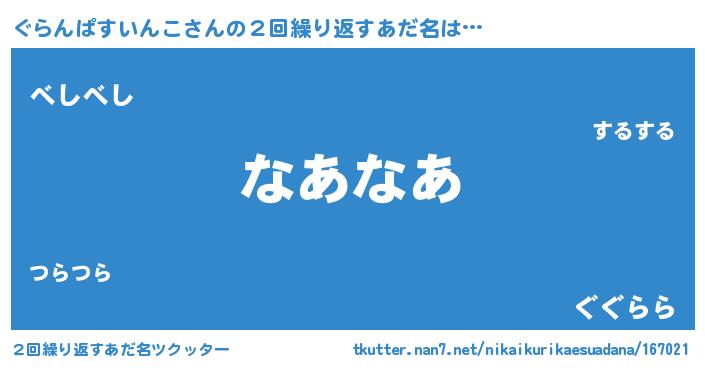 | 意味不明あだ名 | 『とにかく怪しいぐらんぱすいんこ』 |