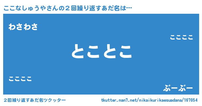| 欧米人風あだ名 | 『ここなしゅうや・ステッグマイヤー』 |