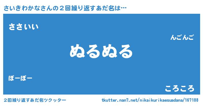 | 欧米人風あだ名 | 『ウサインさいきわかな』 |