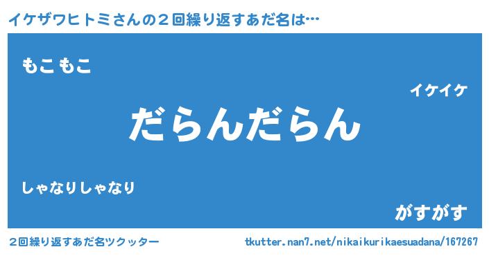 | ヘコむあだ名 | 『イケザワヒトミ(笑)』『イケふぇ~』 |