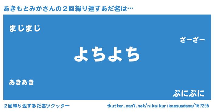 | ヘコむあだ名 | 『あきっふぃ~』『あきもとみか(爆)』 |