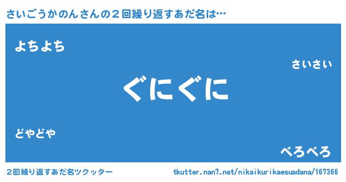 | 欧米人風あだ名 | 『ダルビッシュさいごうかのん』 |
