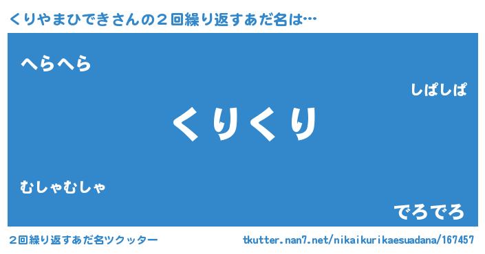 | ヘコむあだ名 | 『くりふぇ~』『くりぷりん』 |