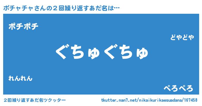 | ヘコむあだ名 | 『ポチャチャ(笑)』『ポチもー』 |