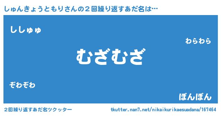 | 意味不明あだ名 | 『自称しゅんきょうともり』 |