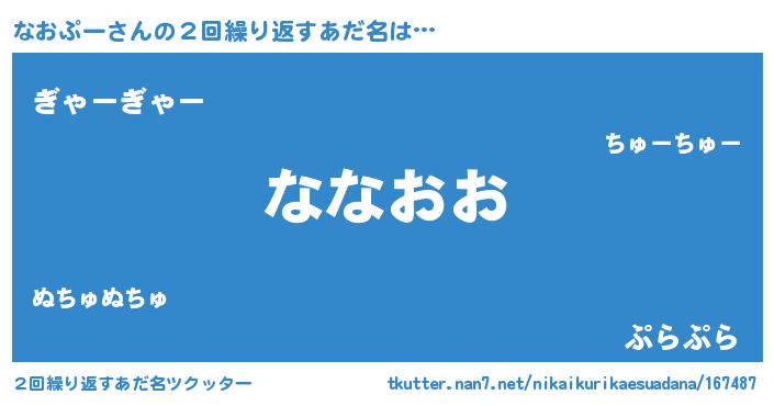 | 欧米人風あだ名 | 『なおぷークリステル』 |