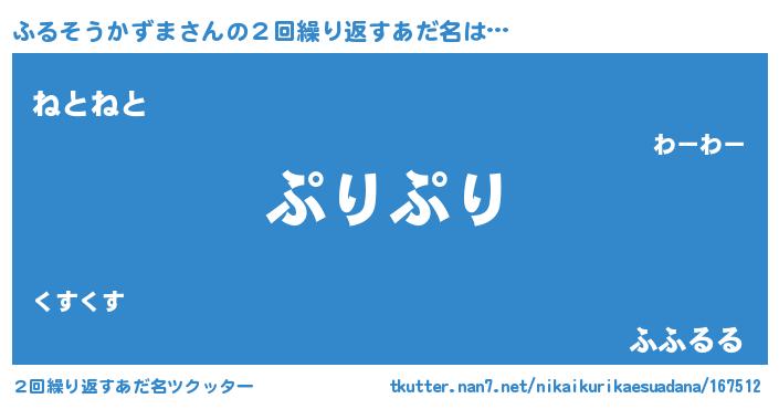 | 女子向けラノベタイトル風あだ名 | 『ふるそうかずま恋絵巻』 |