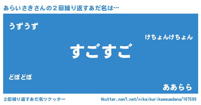 | 意味不明あだ名 | 『住所不定無職あらいさき(74歳)』 |