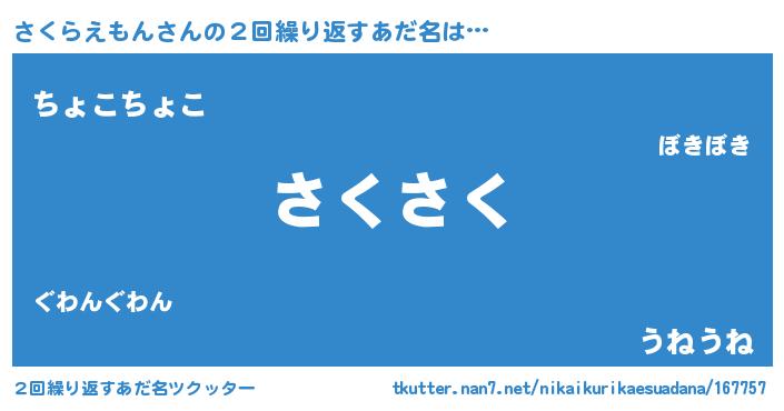 | ファンタジー風あだ名 | 『サクフェル』『カークサクラー』 |