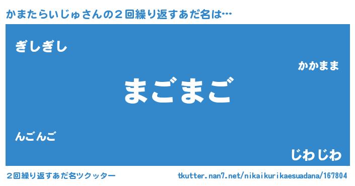 | 意味不明あだ名 | 『自称かまたらいじゅ』 |