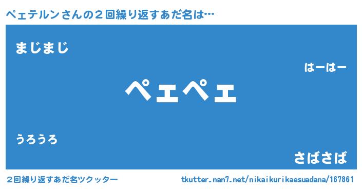 | 男性向けラノベタイトル風あだ名 | 『ペェテルンの憂鬱』 |