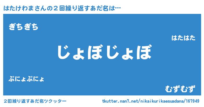 | ヘコむあだ名 | 『はたけわま(苦笑)』『はたにゅー』 |