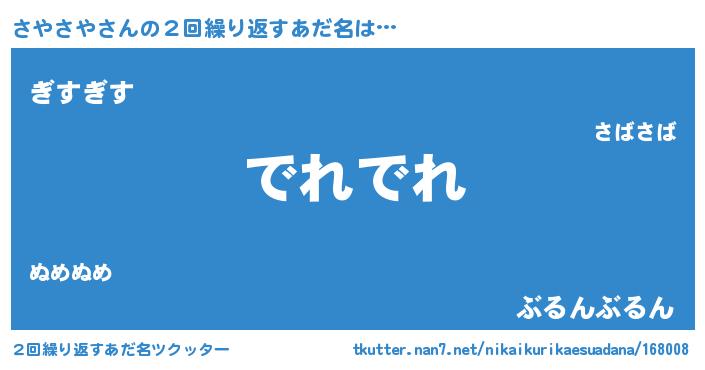 | 意味不明あだ名 | 『永久保存さやさや』『自称さやさや』 |