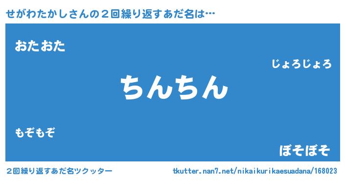 | 意味不明あだ名 | 『とにかく怪しいせがわたかし』 |
