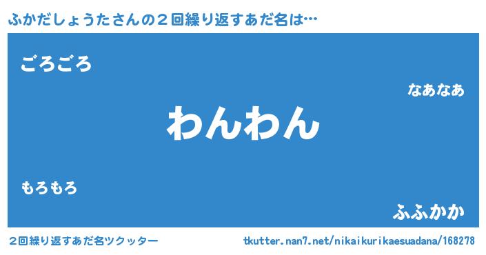 | 男性向けラノベタイトル風あだ名 | 『ふかだしょうた~年齢イコール彼女いない歴の魔法使い~』 |