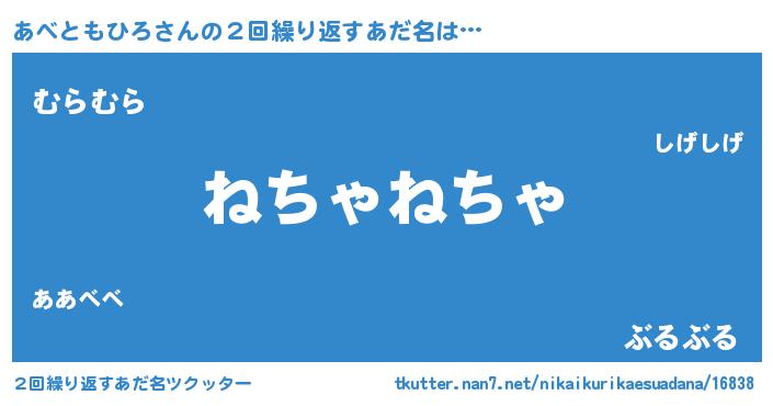 | 男性向けラノベタイトル風あだ名 | 『あべともひろの嫁は女の子じゃないと思った?』 |