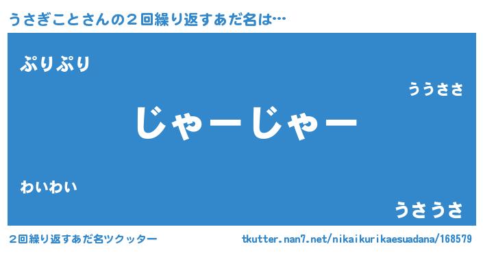| 意味不明あだ名 | 『住所不定無職うさぎこと(89歳)』 |