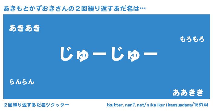 | ヘコむあだ名 | 『あきにー』『なまこ酢』『あき太郎』 |