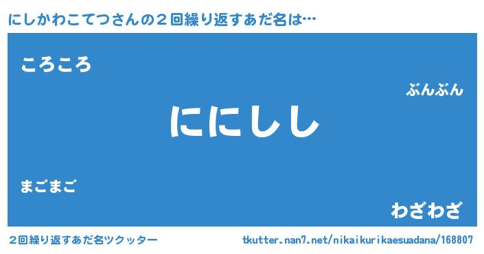 | 意味不明あだ名 | 『にしかわこてつフォーエバー』 |