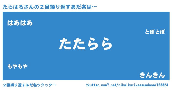 | 意味不明あだ名 | 『たらはるフォーエバー』『自称たらはる』 |