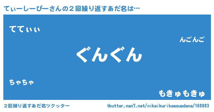 | 意味不明あだ名 | 『永久保存てぃーしーびー』 |