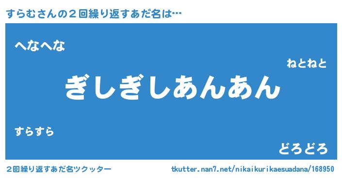 | 欧米人風あだ名 | 『アンジェラ・すらむ』『ダニエルすらむ』 |