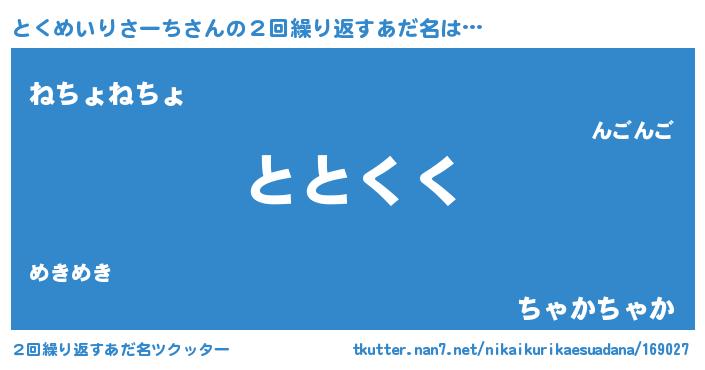 | ポケモン風あだ名 | 『トクメダネ』『ヒトクメイリサーチ』 |