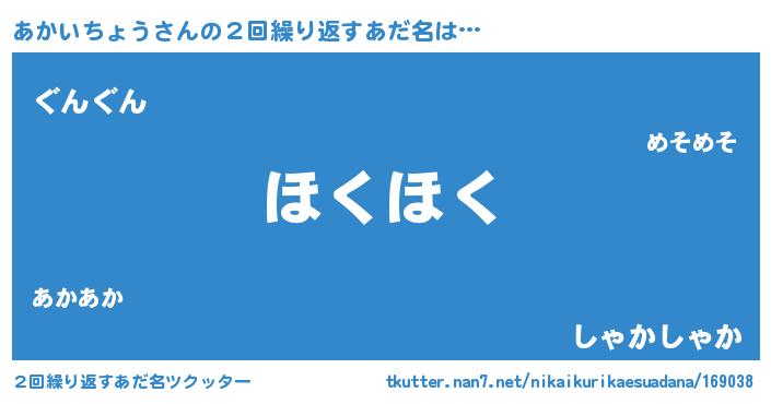 | 欧米人風あだ名 | 『ダニエルあかいちょう』 |