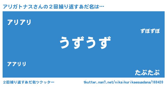 | 意味不明あだ名 | 『とにかく怪しいアリガトナス』 |