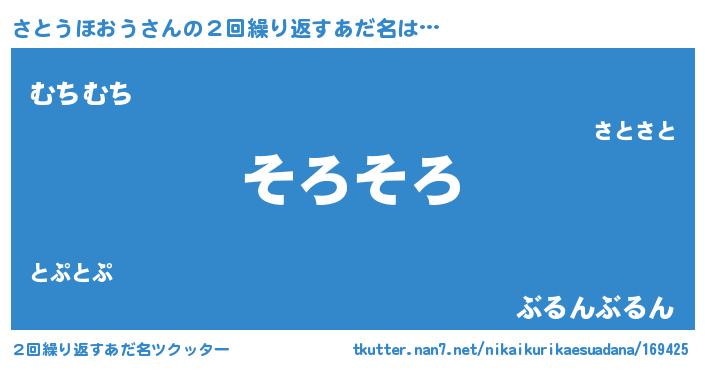 | 意味不明あだ名 | 『住所不定無職さとうほおう(85歳)』 |