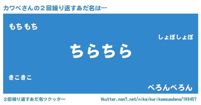 | 意味不明あだ名 | 『自称カワベ』『眠気覚ましガムカワベ味』 |