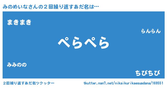 | ヒーロー風カッコイイあだ名 | 『慈愛の使者みのめいな』『仮面ミノダー』 |
