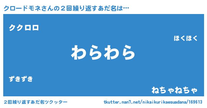 | 男性向けラノベタイトル風あだ名 | 『クロードモネ~年齢イコール彼女いない歴の魔法使い~』 |