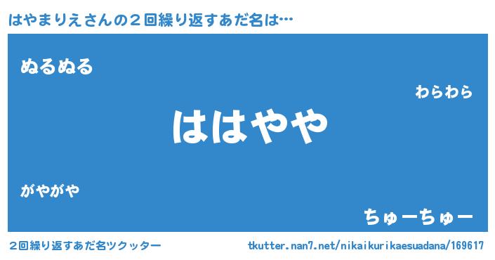 | 意味不明あだ名 | 『はやまりえフォーエバー』 |